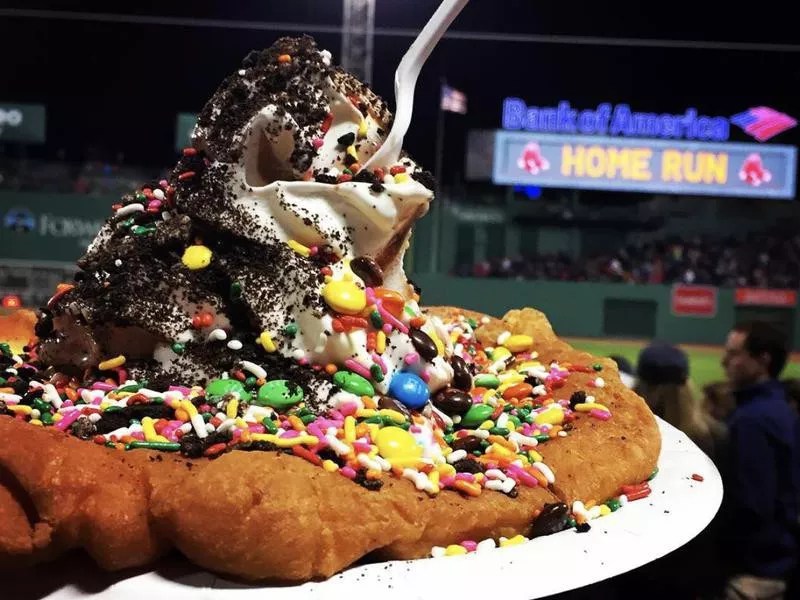 #7. At Fenway Park, home of the Boston Red Sox, you would think their famous food would be something that lives under the sea. However, they are known for this famous dessert called the fried dough sundae. This delicious dessert gives you a hot and cold treat that is one for the ages. A plate-size piece of fried dough topped with either chocolate or vanilla ice cream, and then top it off with a mound of whip cream and your choice of toppings. Better eat it fast cause it will melt quickly but, it won’t break the bank as it is only $7.75 per plate. Skip dinner and have two, I would say.