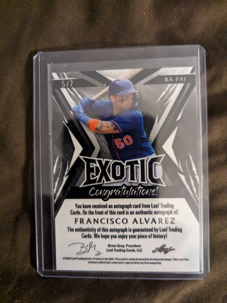 So, the 1/1 is a sports card podcast I usually record with my daughter Charlotte. Due to unforeseen circumstances, we couldn’t go live or record, and Charlotte wanted to break (not like I didn’t), so we decided to open our boxes, take pictures, and do our first blog.