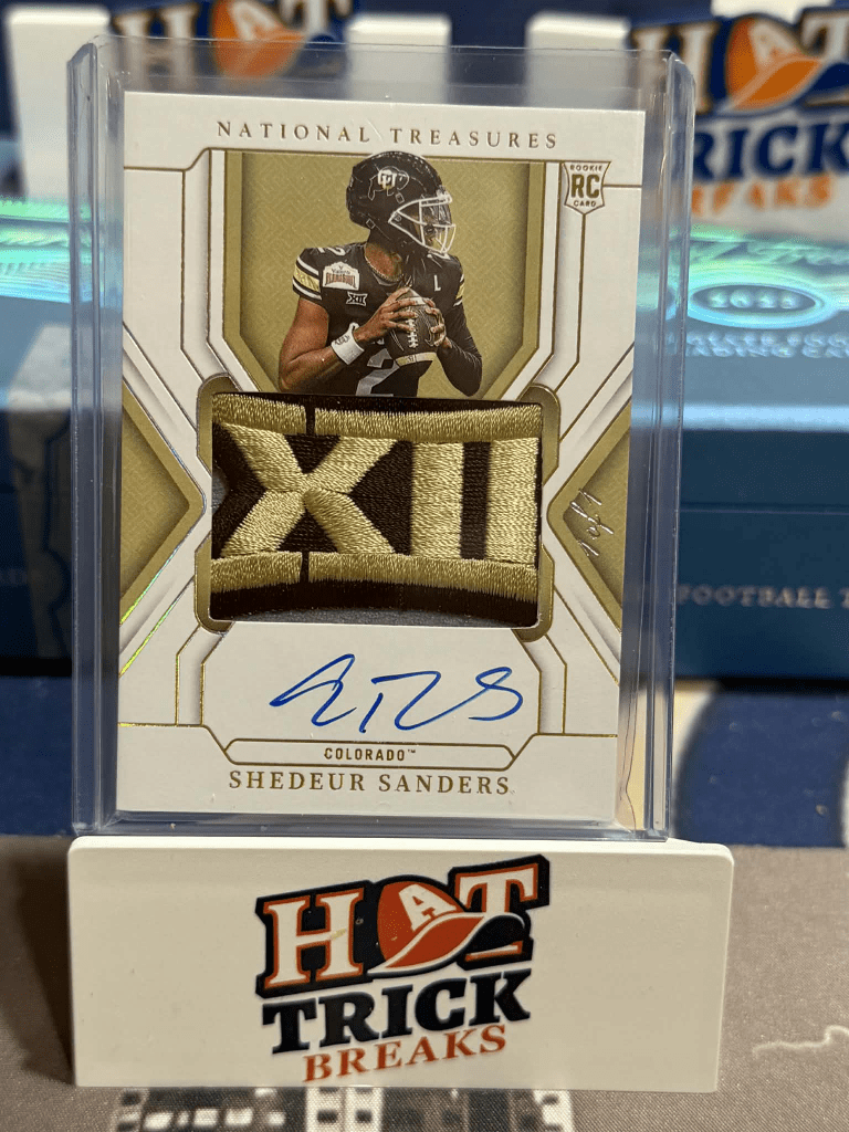 Shedeur has vaulted himself to conversation of the #1 Quarterback all depending on what happens with Watson. That being said, I have been a sport card dealer for the las 35 years and have had many big time pulls. Yesterday 12/28/2025 I had taken a shot on the Browns when my good pal Joe Knapp of Hat Trick Breaks LLC in Iowa dropped a 2025 Colligate National Treasures and I grabbed my Cowboys but, I had a feeling. This was a feeling I called a “GIBBS” moment and decide to go for a Shedeur Sanders rookie. Well, the last card in the second box Joe says “And look at this.” When he usually says this, he has hit a Monster. I wasn’t prepared for the card to be the Big XII Patch of Shedeur Sanders auto 1/1. This one of the biggest cards of National Treasures I have hit in a long time and the Dugout of Millwood and The Sports Insanity Network wish to thank Joe Knapp and Hatrick Breaks for a very happy holiday present.